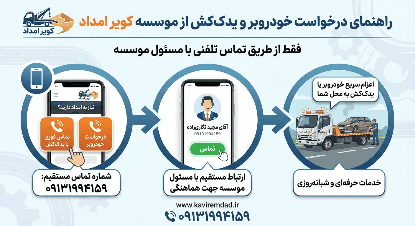 اگر به دنبال خدمات امداد خودرو و خودروبر مطمئن و قانونی هستید، کویر امداد با مدارک معتبر و تخصص لازم، بهترین انتخاب برای شماست.